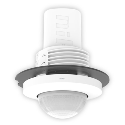 Ten czujnik obecności jest 2-kanałowym czujnikiem nadrzędnym o dużym zasięgu wykrywania do automatycznego sterowania oświetleniem. Czujnik jest wyposażony w wiele funkcji i może być sterowany bezprzewodowo za pomocą przycisków. Montaż sufitowy SnapFit zapewnia szybką i stabilną instalację we wszystkich rodzajach sufitów podwieszanych ze zdejmowanymi płytkami lub bez. Ustawienia czujnika można modyfikować za pomocą aplikacji Niko detector tool i dwukierunkowej komunikacji Bluetooth pomiędzy smartfonem a czujnikiem.