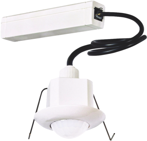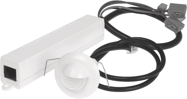 Czujnik ruchu do montażu wymagający minimalnej ilości miejsca, o bardzo małych wymiarach i ze zdalną elektroniką. Konfiguracja jedynie za pomocą pilota PIR lub aplikacji. Przełącznik zewnętrzny (ZAŁ.).