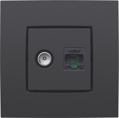 This socket outlet with RJ45 connection point UTP Cat. 5E, PoE++ ready, flat model and coaxial connection is used to make a network connection for telephone, Ethernet, IP, PoE or internet applications.