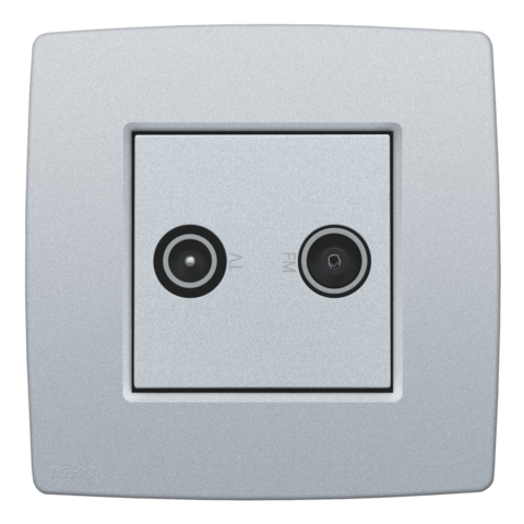 Central plate Niko Original Silver consists of 2 single coax connections and a satellite connection on top. The first input is intended for an EDU TV connection. The second is intended for FM Telenet connection. They are labelled with a TV and an FM icon, respectively.