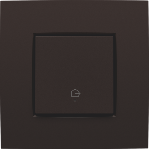 Jednoduché tlačidlo s LED a senzormi komfortu pre Niko Home Control, symbol „odchádzam z domu“, farba dark brown coated