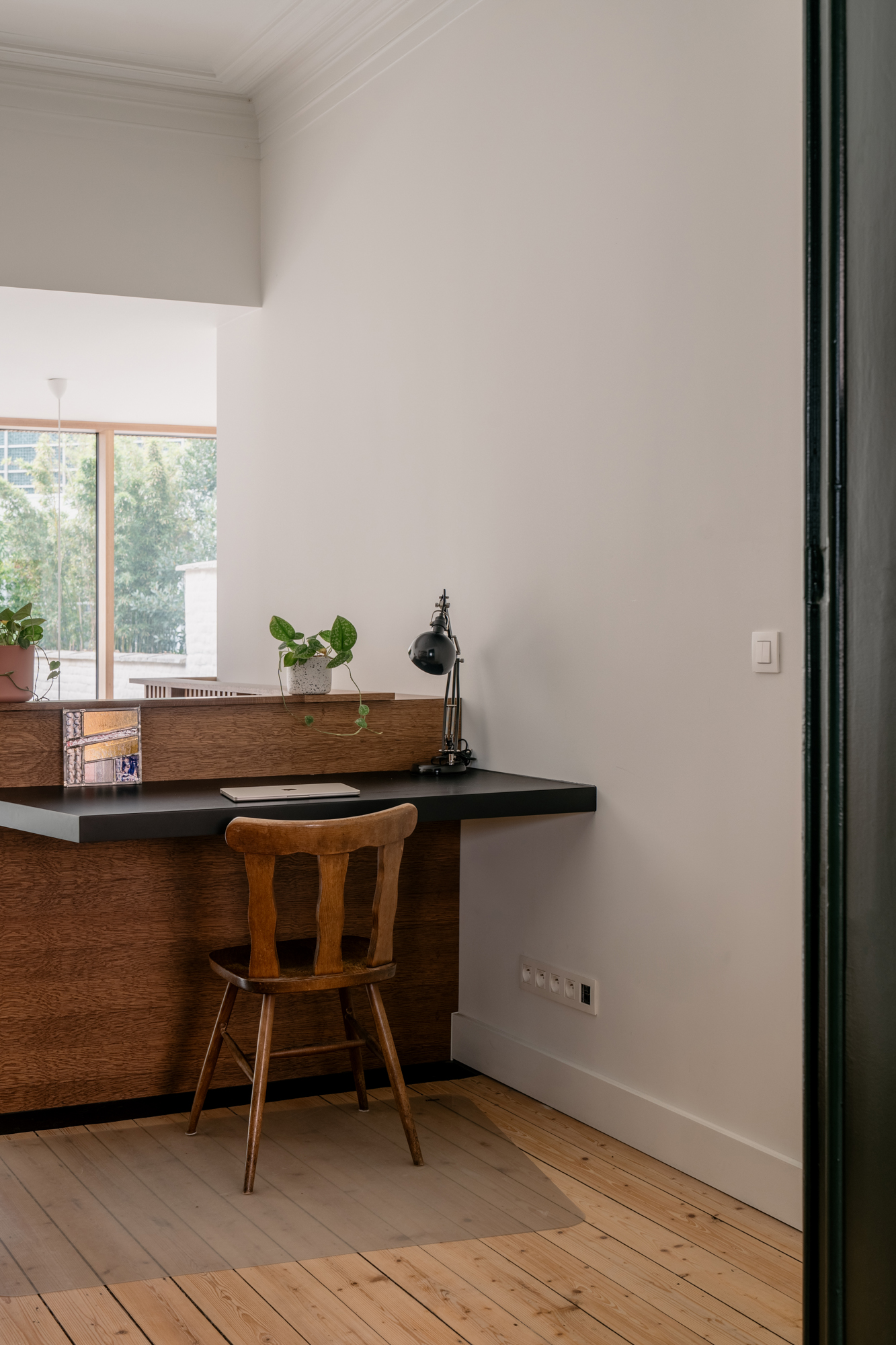 Za nádhernou fasádou tejto elegantnej rezidencie v Gente sa skrýval pôvodný interiér pozostávajúci z mnohých samostatných miestností, ktorý sa časom vôbec nezmenil. „Všetko pôsobilo veľmi tmavo a pôvodné materiály zostali skryté pod vrstvami rôznych povrchových úprav,“ vysvetľuje Thomas z architektonického ateliéru Marge.