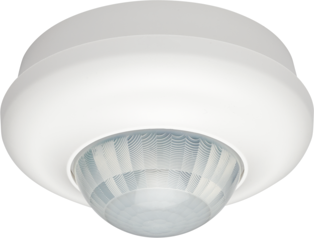 Tento 2-kanálový detektor prítomnosti/neprítomnosti (360°, 10 A) je vhodný na povrchovú montáž do stropu a používa sa na zapínanie a vypínanie interiérového osvetlenia alebo ventilácie. Detektor má kruhovú snímaciu oblasť s priemerom 24 m, ktorú je možné prispôsobiť pomocou uzatváracej clony. Na zariadení s integrovaným svetelným senzorom možno nastaviť každý kanál samostatne ako detektor prítomnosti, resp. neprítomnosti. Ak sa používa ako detektor prítomnosti, osvetlenie sa automaticky zapína a vypína (keď uplynie doba oneskorenia vypnutia). Ak sa používa ako detektor neprítomnosti, osvetlenie sa musí vždy zapnúť najprv manuálne pomocou N.O. tlačidla a po uplynutí doby oneskorenia vypnutia sa automaticky vypne. Prístroj má tiež eko funkciu „eko vypnutie (eco off)“, ktorá používateľovi umožňuje zhasnúť s použitím pripojeného N.O. tlačidla bez toho, aby musel čakať na oneskorenie vypnutia. Ak osvetlenie nevypnete manuálne, vypne sa automaticky po uplynutí doby oneskorenia vypnutia. Detektor má stupeň ochrany IP54, a dva bezpotenciálové kontakty. Nastavenie sa dá vykonať manuálne na samotnom prístroji alebo pomocou diaľkového ovládania. Výrobok môže byť použitý ako samostatná jednotka alebo v kombinácii s maximálne desiatimi podružný detektormi.