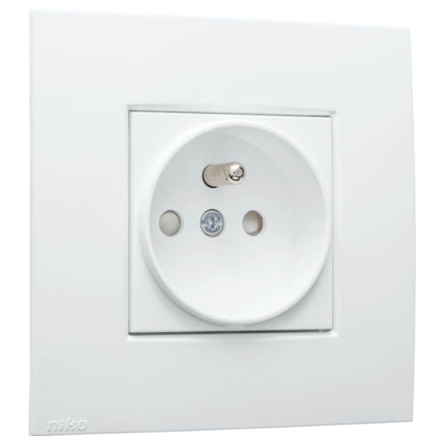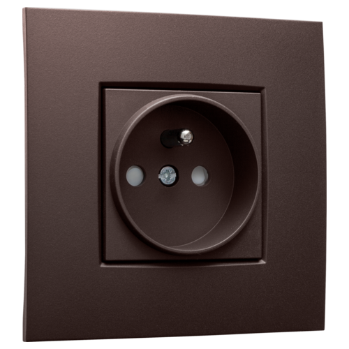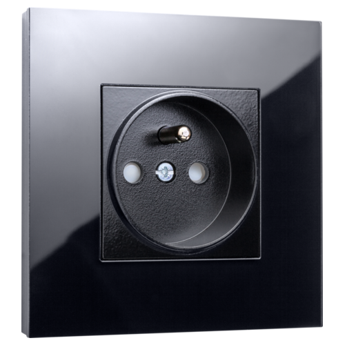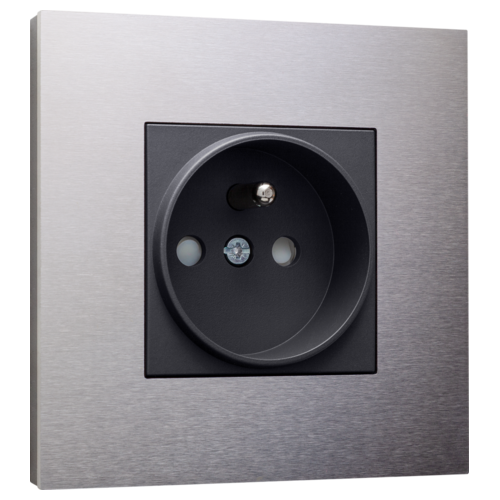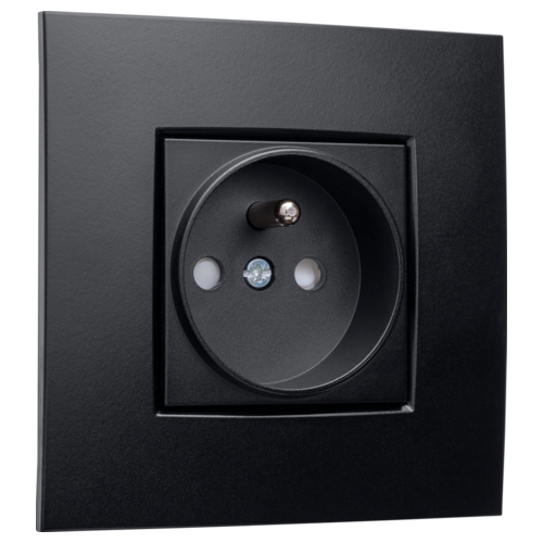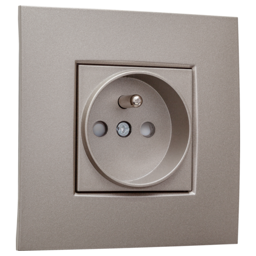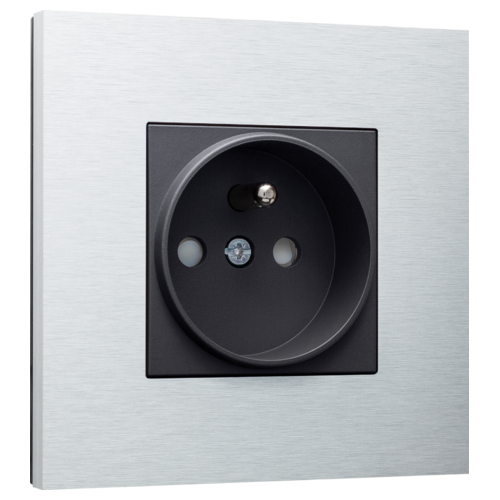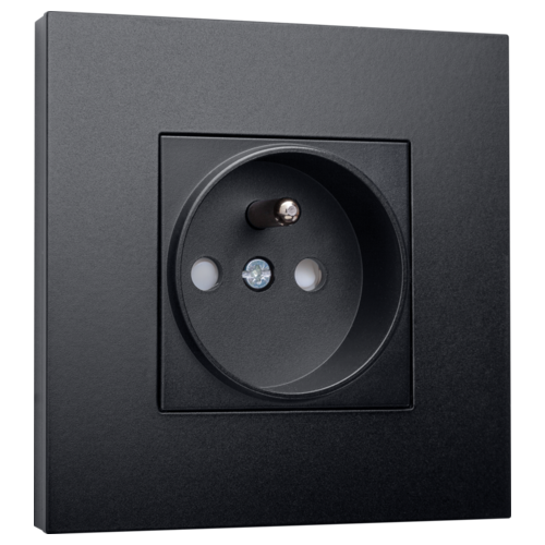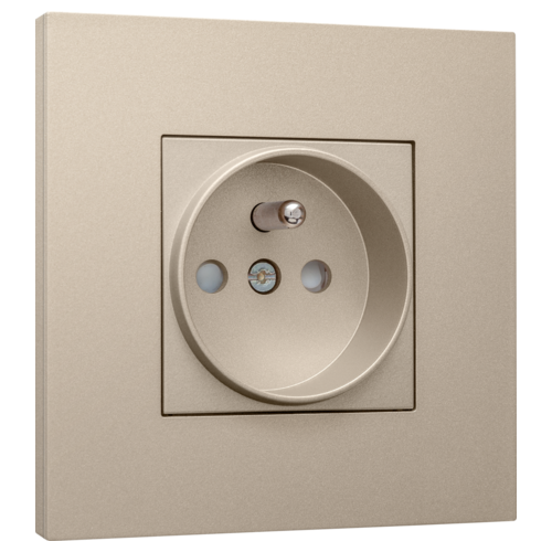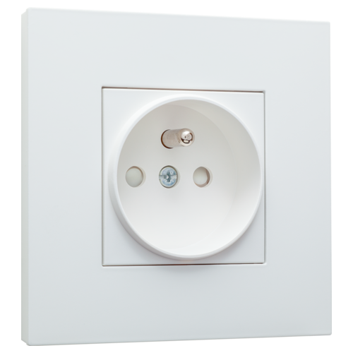 Mechanizmus pre zásuvku s ochranným kolíkom, rozperkami a s detskou poistkou. Hĺbka zapustenia zásuvky je 21 mm. Stredový kryt a rámček vo farbe podľa vášho výberu musíte objednať samostatne.