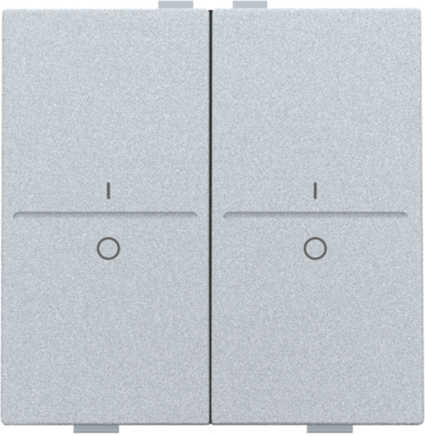 A double key with "I" and "0" symbols for a bus push button in Niko Silver
