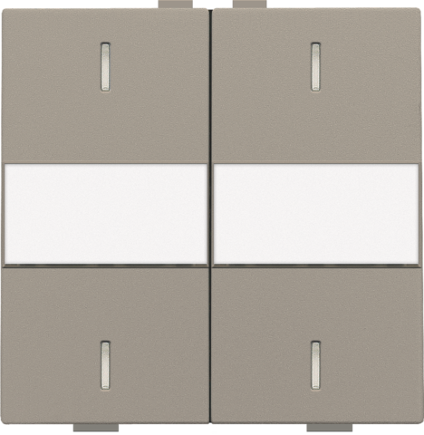 Double key with text field for a bus push button with 4 control buttons and 4 feedback LEDs. The key has a text field. Färg: bronze coated.