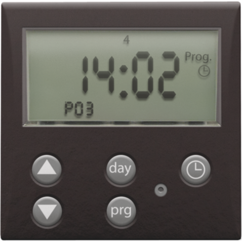 The digital time switch for roll-down shutters is extremely well-suited for the control of your roll-down shutters. This intelligent control has a day and a week programme, a permanent memory and can always be operated manually For use in combination with the base 420-0030x. Färg: Bakelite® chocolate coated