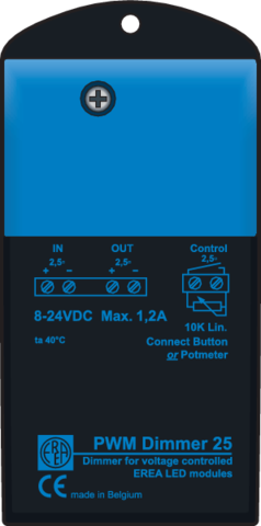 This dimmer has a maximum capacity of 25W and is used for dimming monochromatic LED strips.